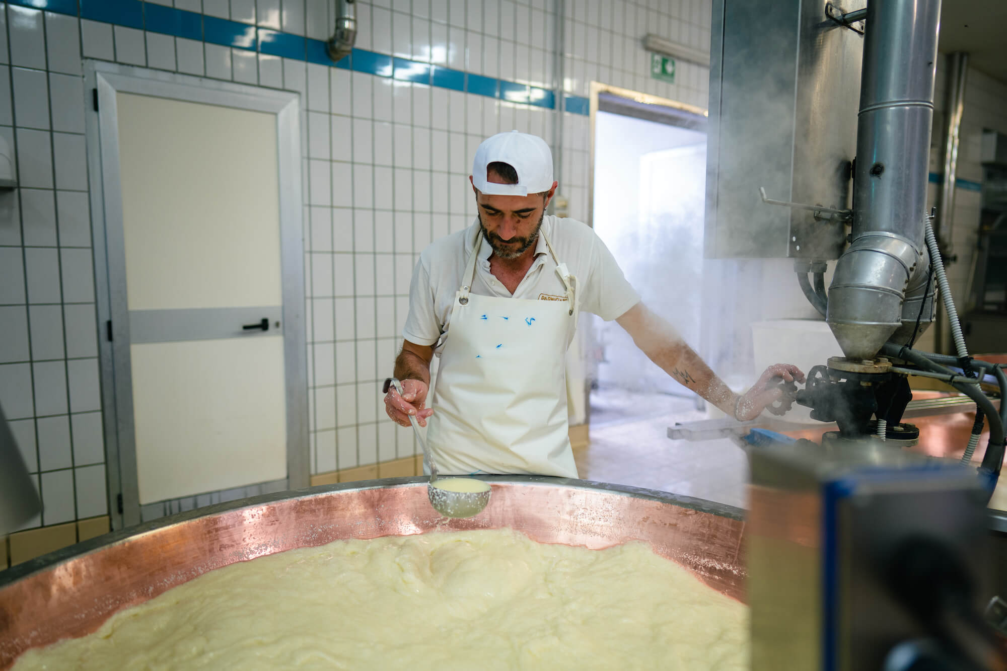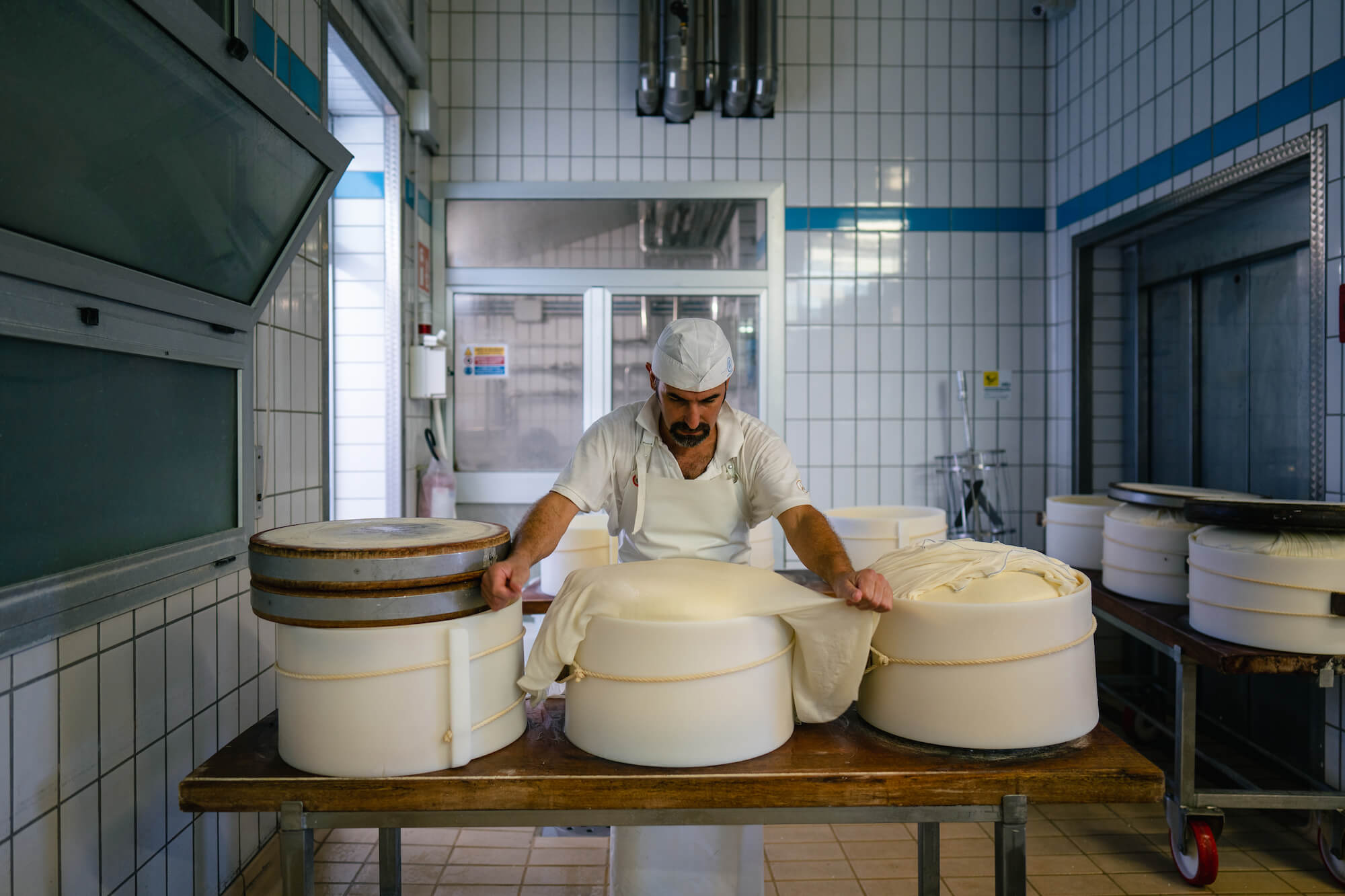 Dall’allevamento delle bovine, alimentate esclusivamente con foraggio naturale prodotto nella stessa area, alla stagionatura minima di 12 mesi, ogni passo è compiuto con la solennità di un rito.